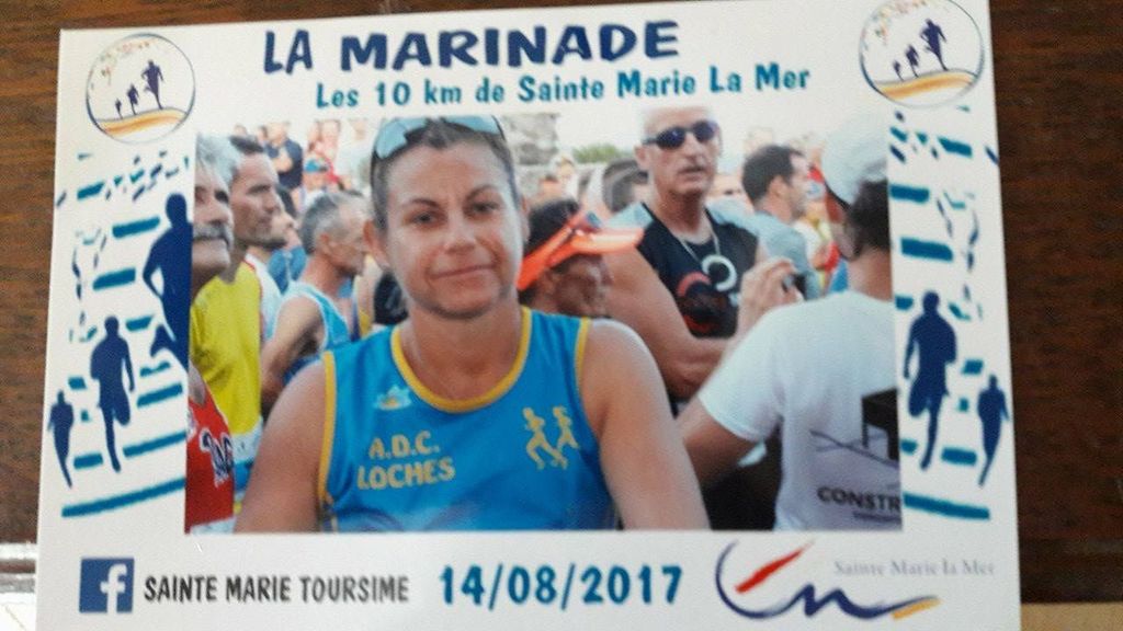 "J'ai profité de mes vacances à Ste Marie la Mer dans le 66 pour courir les 10 kms de la Marinade, le 14 aout dernier à 19h00, course d'une boucle mêlant chemins, plage et un peu de bitume. Course très sympa et festive mais le vent était fort présent ce soir là avec des rafales de plus de 80 kms/h par moment donc pas facile. Dommage que j'ai été contrainte de ralentir à 1km de la fin suite à une douleur soudaine dans le mollet (verdict claquage avec arrêt obligatoire de 15 jours de sport).