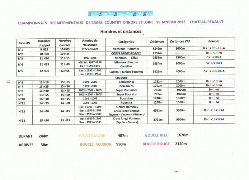 Championnat départemental de cross à Chateaurenault le 15 janvier 2012 .