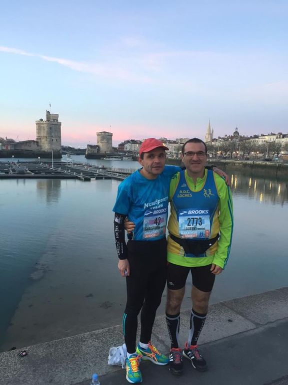 c'est sous un soleil splendide et 6 degres au depart que christophe cochereau et moi meme avont prit le depart du marathon.quelques cotes sur ce parcours avec quelques rafales de vent compliqué un peu les 2 boucles a effectué.christophe finit 50eme en 2h43'10" et moi 2485eme en 3h48'08" sur 5576 concurents et 6800 en tout avec le marathon en duo ainsi que 2300 sur le 10km.a noter une superbe organisation ainsi qu'une pasta party remarquable,ce superbe dimanche ponctuer d'un repas au resto avec des coureurs de veigné rencontrer sur place.
